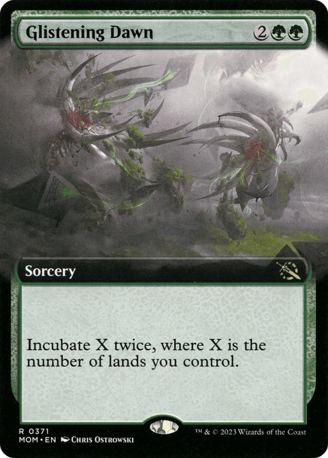 Incubate X twice, where X is the number of lands you control. (To incubate X, create an Incubator token with X +1/+1 counters on it and "{2}: Transform this token." It transforms into a 0/0 Phyrexian artifact creature.)