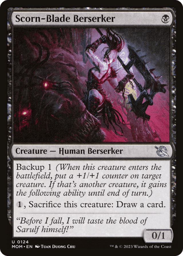 Backup 1 (When this creature enters, put a +1/+1 counter on target creature. If that's another creature, it gains the following ability until end of turn.) {1}, Sacrifice this creature: Draw a card.
