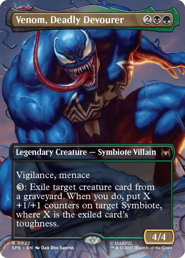 Vigilance, menace {3}: Exile target creature card from a graveyard. When you do, put X +1/+1 counters on target Symbiote, where X is the exiled card's toughness.