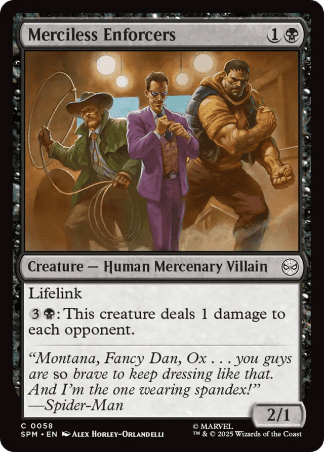 "Montana, Fancy Dan, Ox... you guys are *so* brave to keep dressing like that. And I'm the one wearing spandex!" —Spider-Man