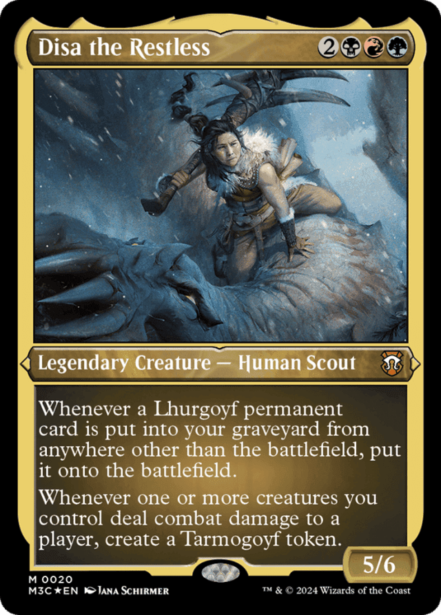 Whenever a Lhurgoyf permanent card is put into your graveyard from anywhere other than the battlefield, put it onto the battlefield. Whenever one or more creatures you control deal combat damage to a player, create a Tarmogoyf token.