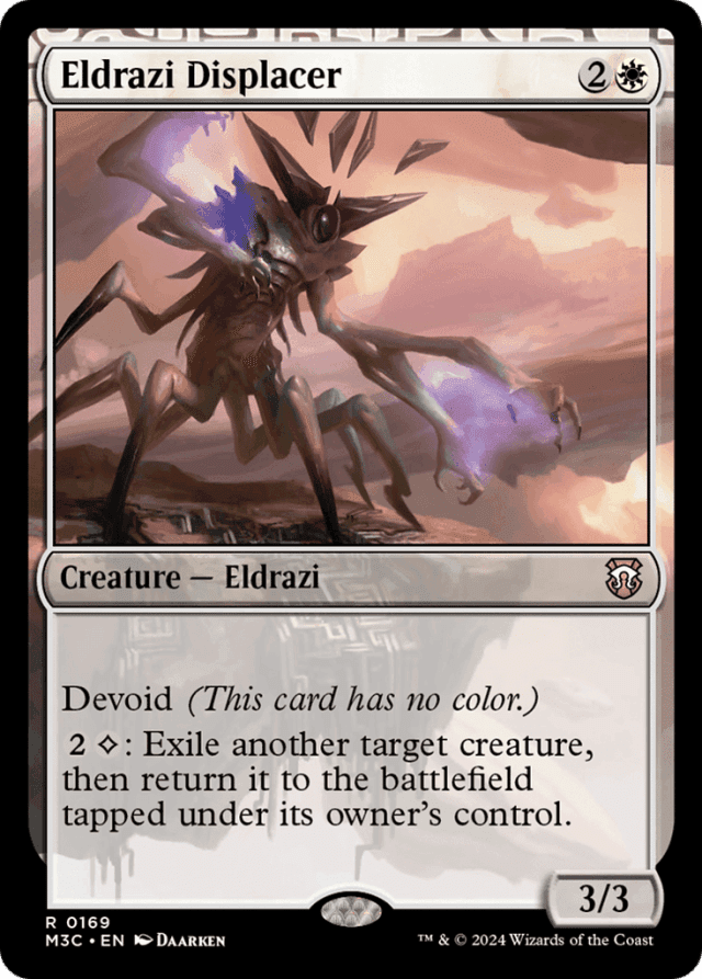 Devoid (This card has no color.) {2}{C}: Exile another target creature, then return it to the battlefield tapped under its owner's control. ({C} represents colorless mana.)