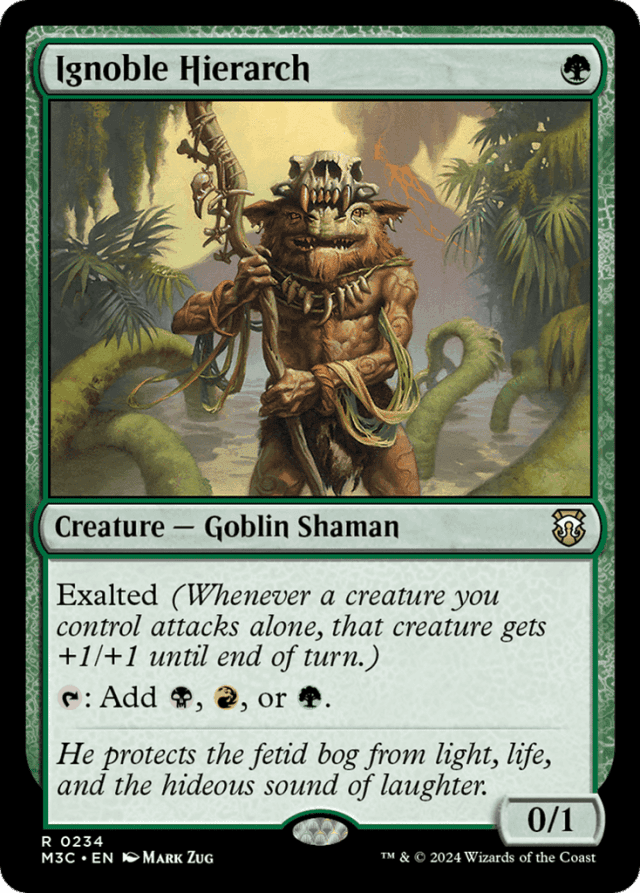 Exalted (Whenever a creature you control attacks alone, that creature gets +1/+1 until end of turn.) {T}: Add {B}, {R}, or {G}.