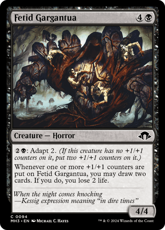 {2}{B}: Adapt 2. (If this creature has no +1/+1 counters on it, put two +1/+1 counters on it.) Whenever one or more +1/+1 counters are put on this creature, you may draw two cards. If you do, you lose 2 life.