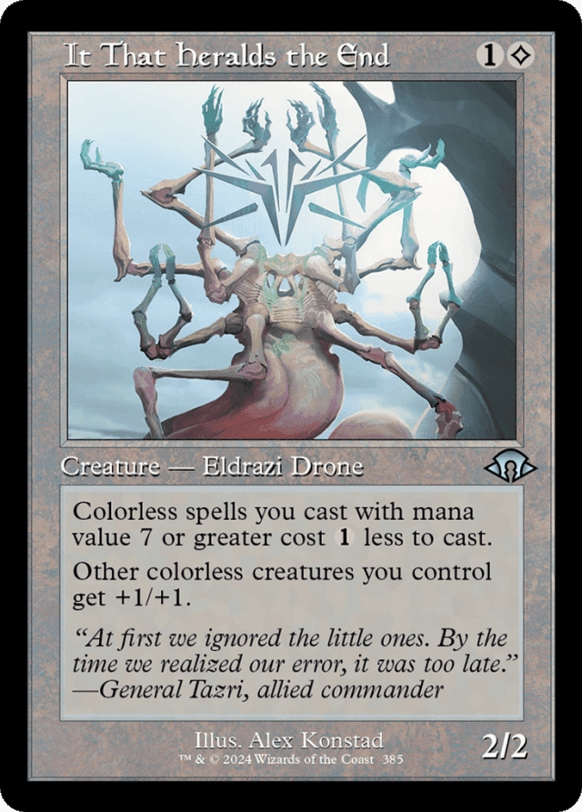 Colorless spells you cast with mana value 7 or greater cost {1} less to cast. Other colorless creatures you control get +1/+1.