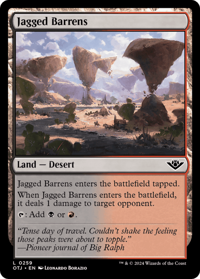 This land enters tapped. When this land enters, it deals 1 damage to target opponent. {T}: Add {B} or {R}.