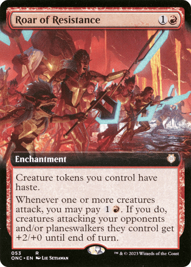 Roar of Resistance's last ability triggers whenever any creatures attack, not just whenever creatures you control attack.