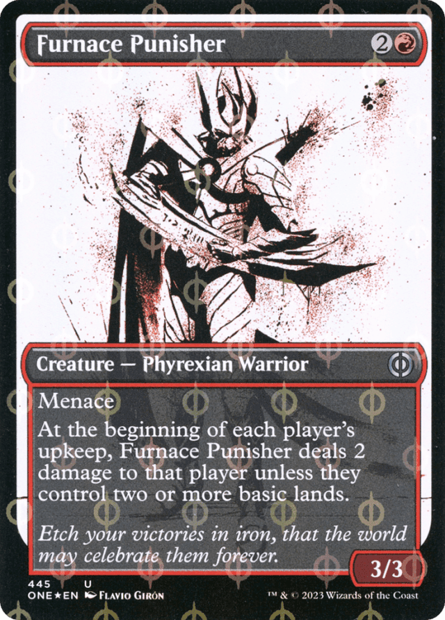 Menace At the beginning of each player's upkeep, this creature deals 2 damage to that player unless they control two or more basic lands.