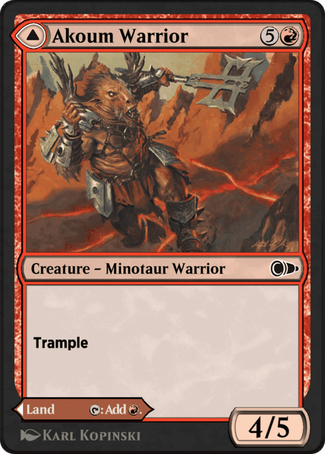 A modal double-faced card can’t be transformed or be put onto the battlefield transformed. Ignore any instruction to transform a modal double-faced card or to put one onto the battlefield transformed. — If an effect allows you to play a land or cast a spell from among a group of cards, you may play or cast a modal double-faced card with any face that fits the criteria of that effect. — If an effect allows you to play a specific modal double-faced card, you may cast it as a spell or play it as a land, as determined by which face you choose to play. If an effect allows you to cast (rather than “play”) a specific modal double-faced card, you can’t play it as a land. — If an effect instructs a player to choose a card name, the name of either face may be chosen. If that effect or a linked ability refers to a spell with the chosen name being cast and/or a land with the chosen name being played, it considers only the chosen name, not the other face’s name. — If an effect puts a double-faced card onto the battlefield, it enters with its front face up. If that front face can’t be put onto the battlefield, it doesn’t enter the battlefield. — In the Commander variant, a double-faced card’s color identity is determined by the mana costs and mana symbols in the rules text of both faces combined. If either face has a color indicator or basic land type, those are also considered. — The mana value of a modal double-faced card is based on the characteristics of the face that’s being considered. On the stack and battlefield, consider whichever face is up. In all other zones, consider only the front face. This is different than how the mana value of a transforming double-faced card is determined. — There is a single triangle icon in the top left corner of the front face. There is a double triangle icon in the top left corner of the back face. — To determine whether it is legal to play a modal double-faced card, consider only the characteristics of the face you’re playing and ignore the other face’s characteristics.