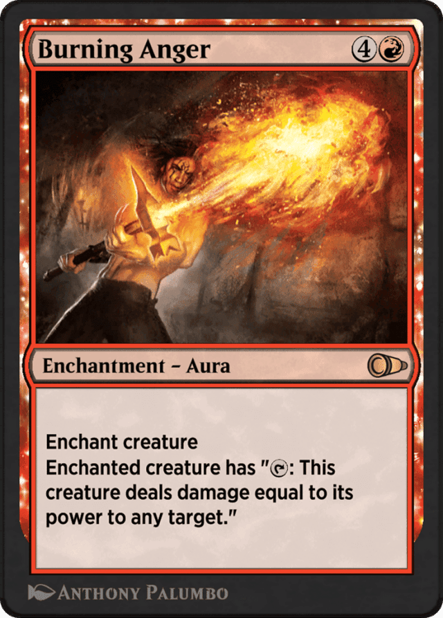 The enchanted creature is the source of the activated ability, not Burning Anger. For example, if the enchanted creature is green, you could activate the ability choosing a creature with protection from red as the target. — Use the power of the enchanted creature as the activated ability resolves to determine how much damage is dealt. If the creature isn't on the battlefield at that time, use its power as it last existed on the battlefield.