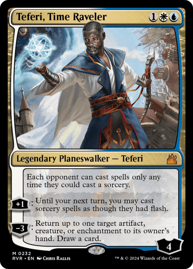 If an effect allows opponents to cast a spell as though it had flash (for example, if your opponent also controls a Teferi, Time Raveler and activates his +1 loyalty ability), the restriction of Teferi's first ability takes precedence over that permission. — You may activate Teferi's last ability without choosing any target. You'll just draw a card. However, if you do choose a target and the target permanent is an illegal target by the time Teferi's last ability tries to resolve, the ability doesn't resolve. You don't draw a card.