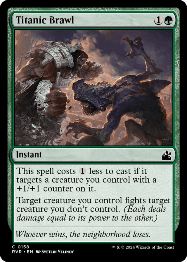 If either target is an illegal target as Titanic Brawl resolves, neither creature will deal or be dealt damage.