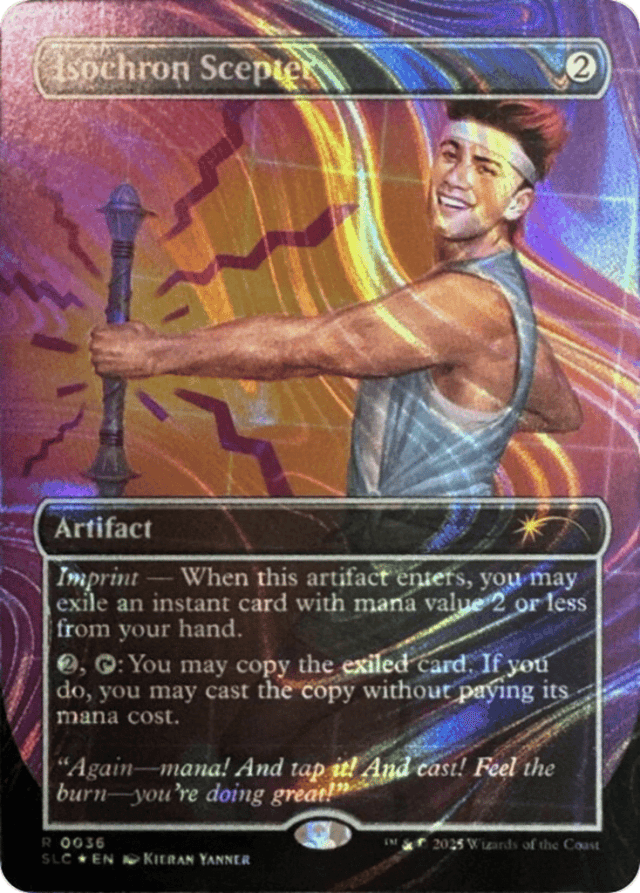If Isochron Scepter leaves the battlefield while the activated ability is on the stack, the ability can still make a copy. On the other hand, if the imprinted card leaves the exile zone while the activated ability is on the stack, the copy can't be made. — If a spell has {X} in its mana cost, you must choose 0 as the value of X when casting it without paying its mana cost. — If you cast a spell "without paying its mana cost," you can't choose to cast it for any alternative costs. You can, however, pay additional costs. If the card has any mandatory additional costs, those must be paid to cast the spell. — If you don't want to cast the copy, you can choose not to; the copy ceases to exist the next time state-based actions are checked. — You cast the copy while the ability is resolving and still on the stack. You can't wait to cast it later in the turn.