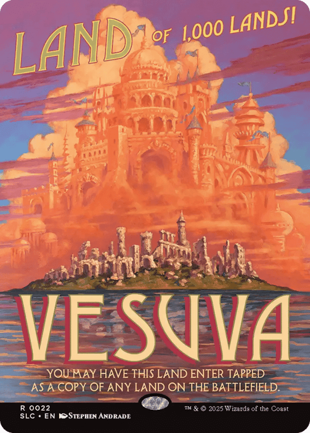 Any enters-the-battlefield abilities of the copied land will trigger if Vesuva is entering the battlefield. Any "As [this land] enters the battlefield" or "[This land] enters the battlefield with" abilities of the copied land will also work. — If Vesuva somehow enters the battlefield at the same time as another land, Vesuva can't become a copy of that land. You may choose only a land that's already on the battlefield. — If the copied land is copying something else, Vesuva uses the copiable values of that land. In most cases, Vesuva will be a copy of whatever that land is copying. — If you don't choose a land on the battlefield, Vesuva enters the battlefield untapped as itself, and will not be able to tap for mana. — Vesuva copies exactly what is printed on the land it's copying and nothing else (unless it's copying a land that's copying something else; see below). It doesn't copy whether a land is tapped or untapped, whether it has any counters on it or Auras attached to it, or any non-copy effects that changed its types, and so on.
