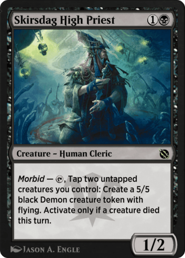 Morbid — {T}, Tap two untapped creatures you control: Create a 5/5 black Demon creature token with flying. Activate only if a creature died this turn.