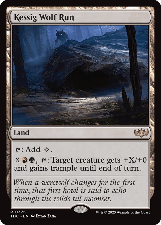 {T}: Add {C}. {X}{R}{G}, {T}: Target creature gets +X/+0 and gains trample until end of turn.