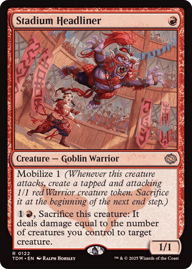 Mobilize 1 (Whenever this creature attacks, create a tapped and attacking 1/1 red Warrior creature token. Sacrifice it at the beginning of the next end step.) {1}{R}, Sacrifice this creature: It deals damage equal to the number of creatures you control to target creature.