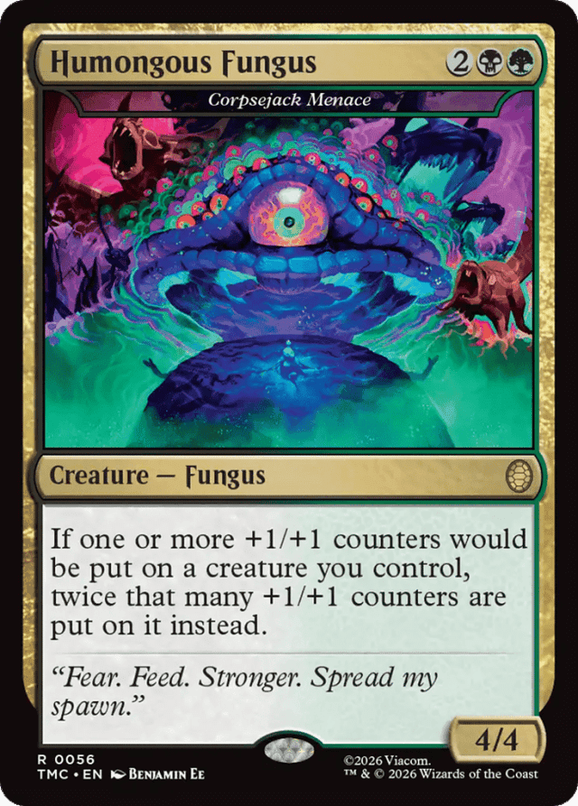 If a creature you control would enter the battlefield with a number of +1/+1 counters on it, it enters with twice that many instead. — If you control two Corpsejack Menaces, the number of +1/+1 counters put on a creature is four times the original number. Three Corpsejack Menaces multiplies the original number by eight, and so on.
