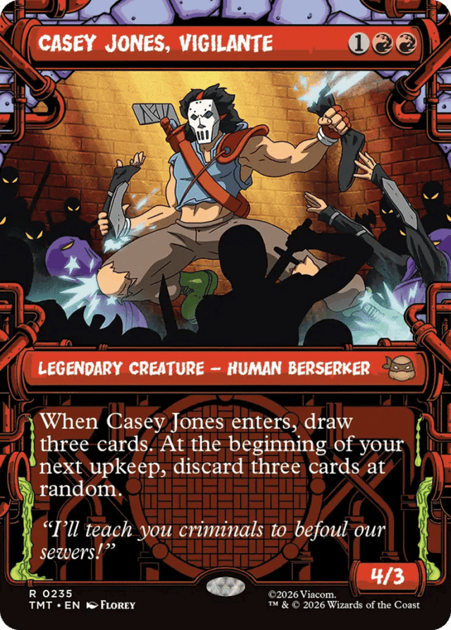 When Casey Jones enters, draw three cards. At the beginning of your next upkeep, discard three cards at random.
