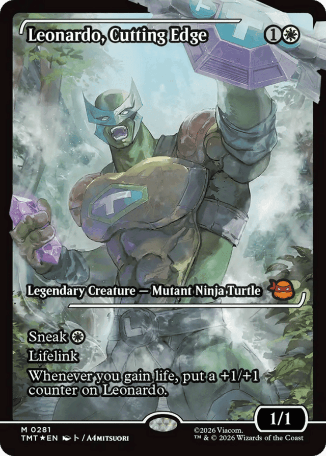 Sneak {W} (You may cast this spell for {W} if you also return an unblocked attacker you control to hand during the declare blockers step. He enters tapped and attacking.) Lifelink Whenever you gain life, put a +1/+1 counter on Leonardo.