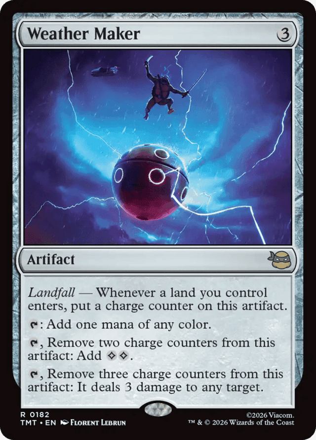 Landfall — Whenever a land you control enters, put a charge counter on this artifact. {T}: Add one mana of any color. {T}, Remove two charge counters from this artifact: Add {C}{C}. {T}, Remove three charge counters from this artifact: It deals 3 damage to any target.