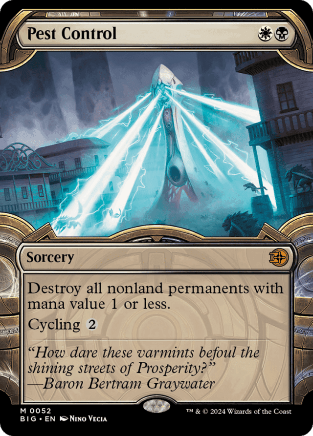 Destroy all nonland permanents with mana value 1 or less. Cycling {2} ({2}, Discard this card: Draw a card.)