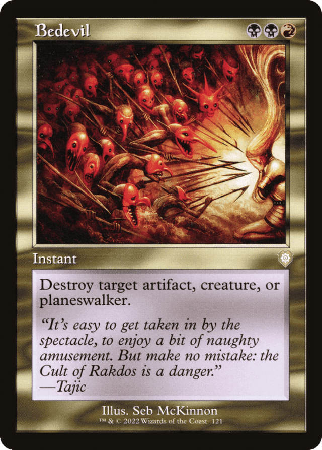 "It's easy to get taken in by the spectacle, to enjoy a bit of naughty amusement. But make no mistake: the Cult of Rakdos is a danger." —Tajic