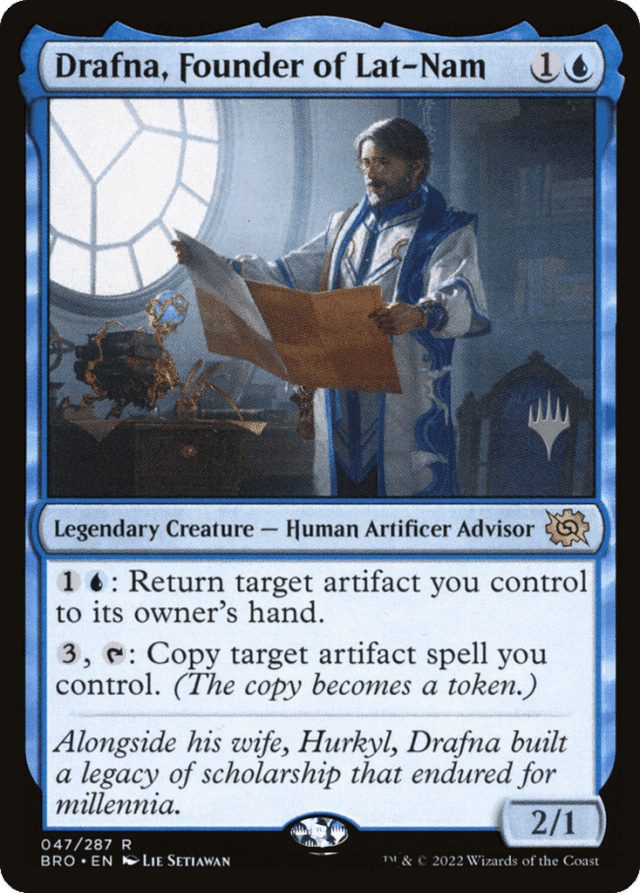 {1}{U}: Return target artifact you control to its owner's hand. {3}, {T}: Copy target artifact spell you control. (The copy becomes a token.)