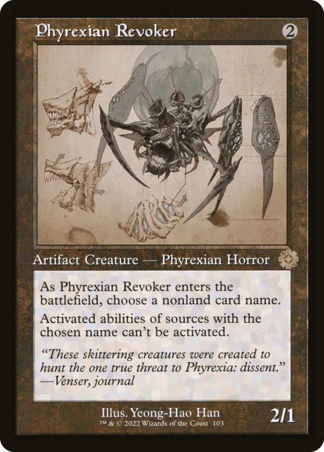 "These skittering creatures were created to hunt the one true threat to Phyrexia: dissent." —Venser, journal