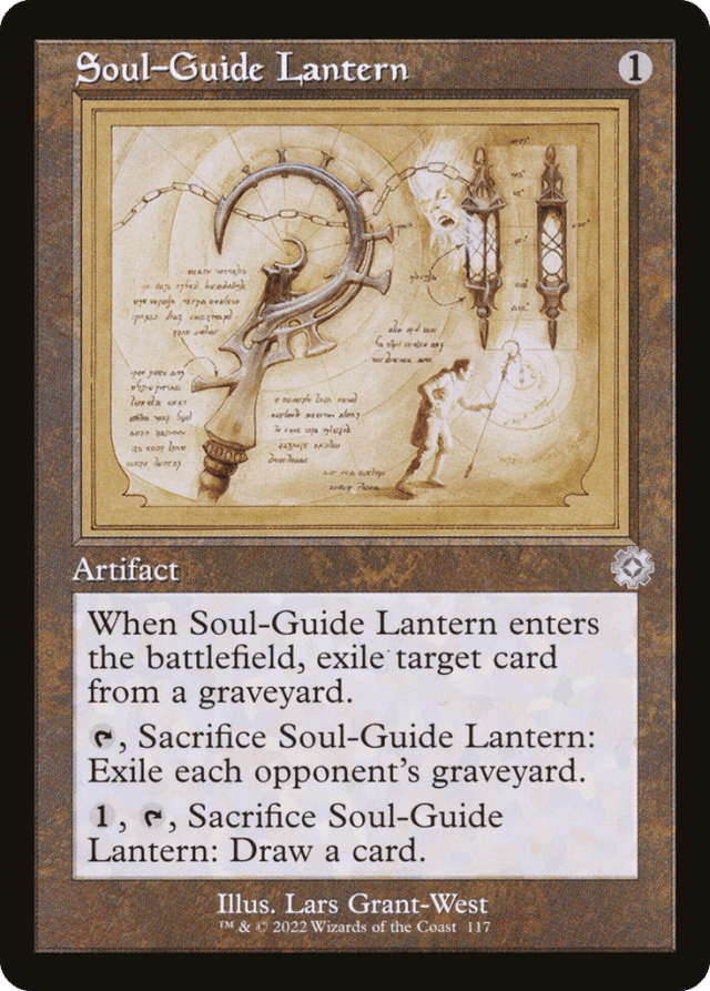 When this artifact enters, exile target card from a graveyard. {T}, Sacrifice this artifact: Exile each opponent's graveyard. {1}, {T}, Sacrifice this artifact: Draw a card.