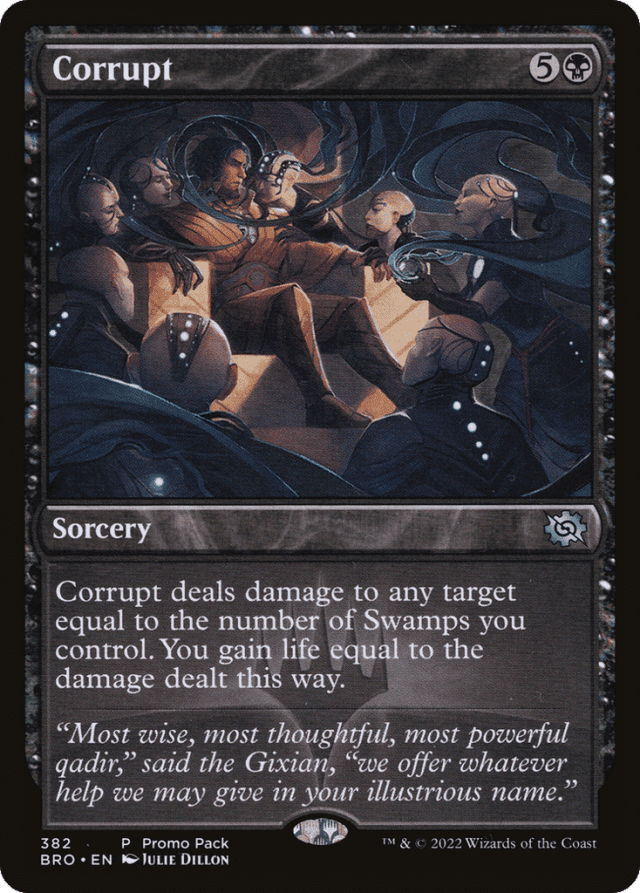 Corrupt deals damage to any target equal to the number of Swamps you control. You gain life equal to the damage dealt this way.