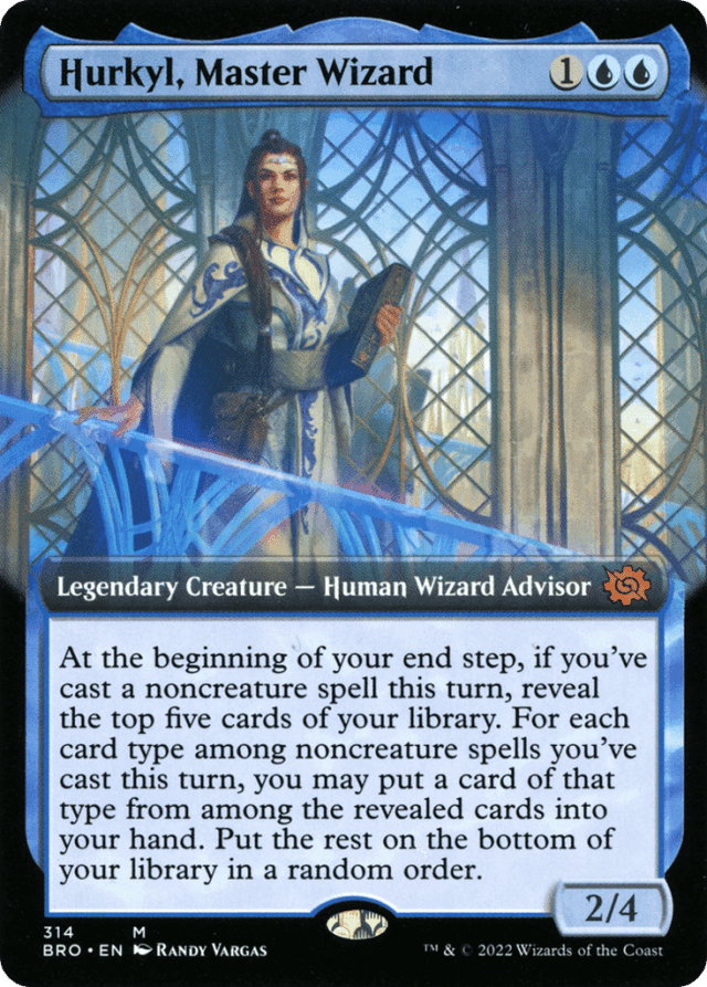 Hurkyl need not have been on the battlefield at the time the noncreature spells were cast for the ability to trigger or for the spells to be counted. — The card types that a noncreature spell can have are artifact, battle, enchantment, instant, kindred, planeswalker, and sorcery. Subtypes, like Human and Equipment, and supertypes, like snow and legendary, aren't card types.