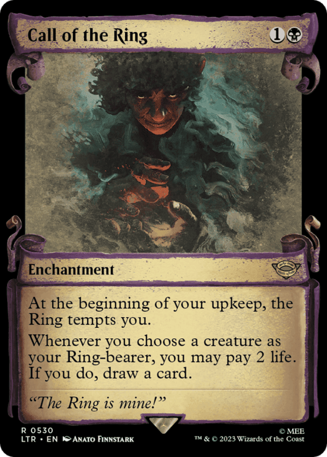At the beginning of your upkeep, the Ring tempts you. Whenever you choose a creature as your Ring-bearer, you may pay 2 life. If you do, draw a card.