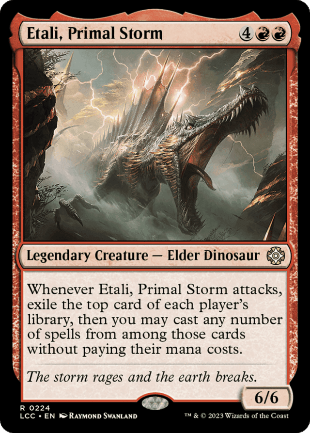Whenever Etali attacks, exile the top card of each player's library, then you may cast any number of spells from among those cards without paying their mana costs.