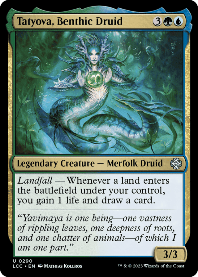 Landfall — Whenever a land you control enters, you gain 1 life and draw a card.