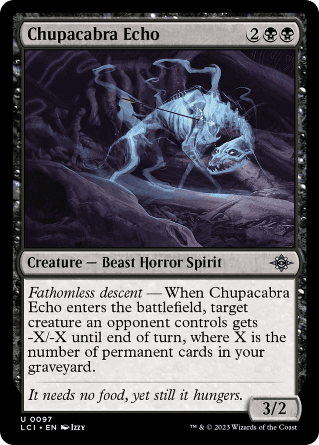 Fathomless descent — When this creature enters, target creature an opponent controls gets -X/-X until end of turn, where X is the number of permanent cards in your graveyard.