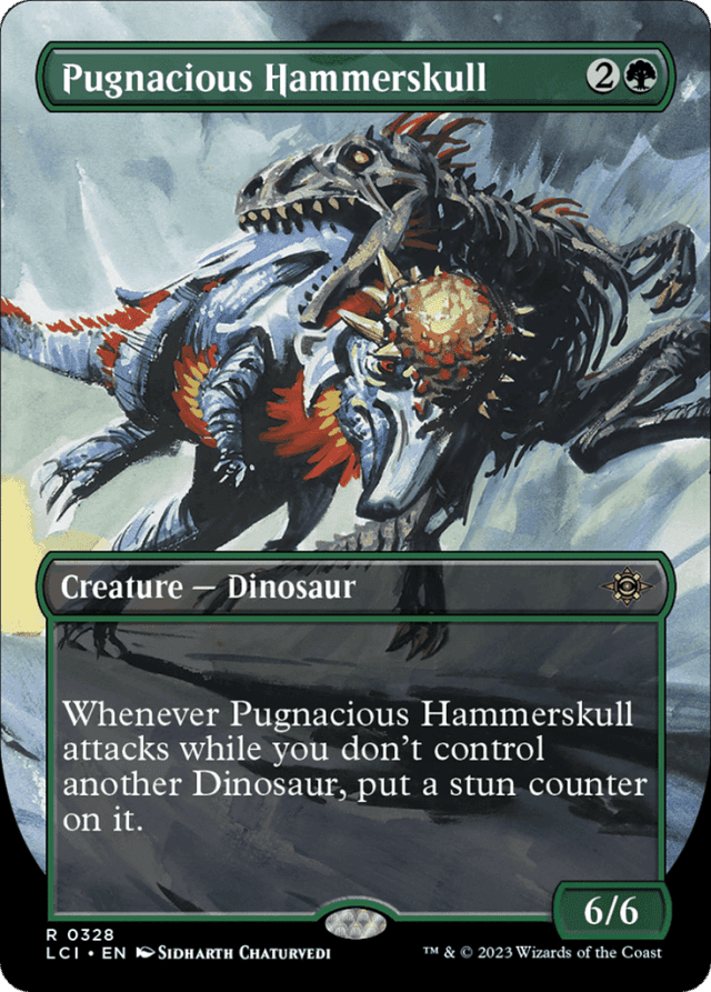 Whenever this creature attacks while you don't control another Dinosaur, put a stun counter on it. (If a permanent with a stun counter would become untapped, remove one from it instead.)