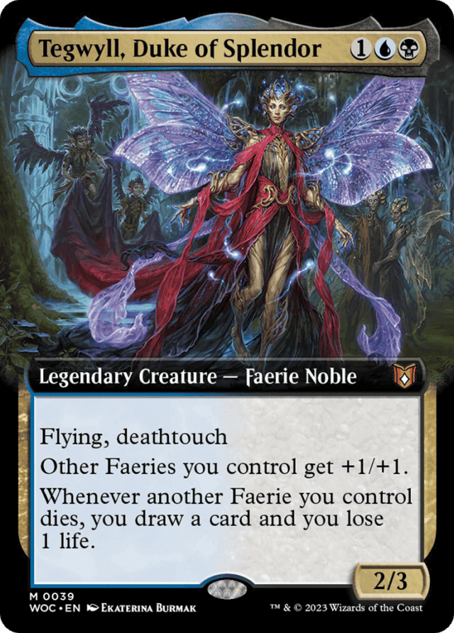 If Tegwyll, Duke of Splendor dies at the same time as one or more other Faeries you control, Tegwyll's ability triggers for each of those other Faeries.