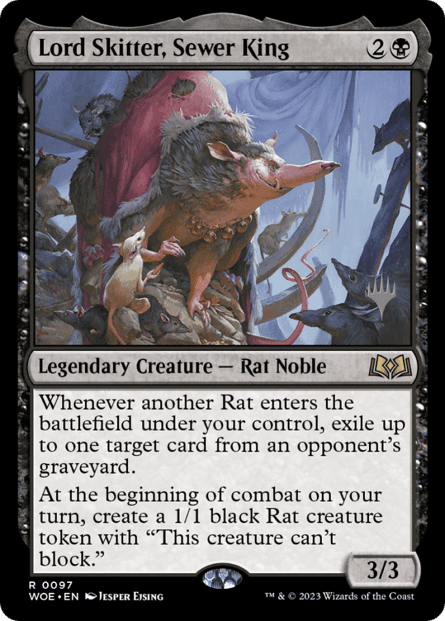 Whenever another Rat you control enters, exile up to one target card from an opponent's graveyard. At the beginning of combat on your turn, create a 1/1 black Rat creature token with "This token can't block."