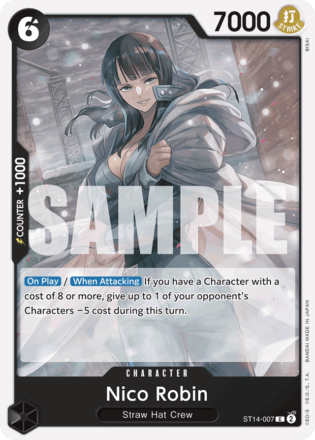 [On Play]/[When Attacking] If you have a Character with a cost of 8 or more, give up to 1 of your opponent's Characters −5 cost during this turn.