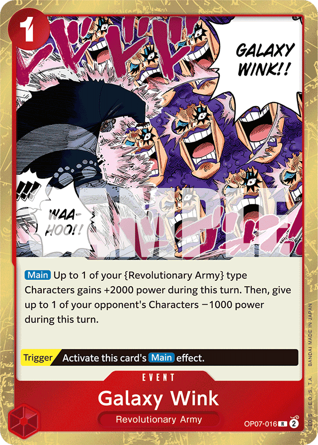 [Main] Up to 1 of your {Revolutionary Army} type Characters gains +2000 power during this turn. Then, give up to 1 of your opponent's Characters −1000 power during this turn. [Trigger] Activate this card's [Main] effect.