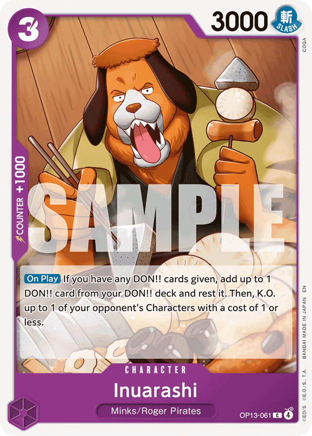 [On Play] If you have any DON!! cards given, add up to 1 DON!! card from your DON!! deck and rest it. Then, K.O. up to 1 of your opponent's Characters with a cost of 1 or less.