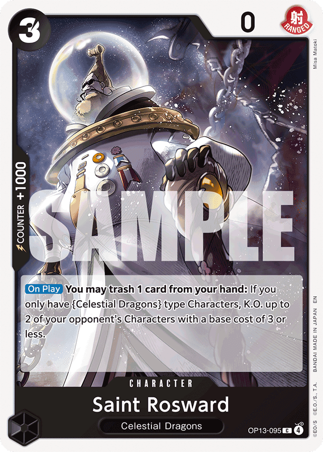 [On Play] You may trash 1 card from your hand: If you only have {Celestial Dragons} type Characters, K.O. up to 2 of your opponent's Characters with a base cost of 3 or less.