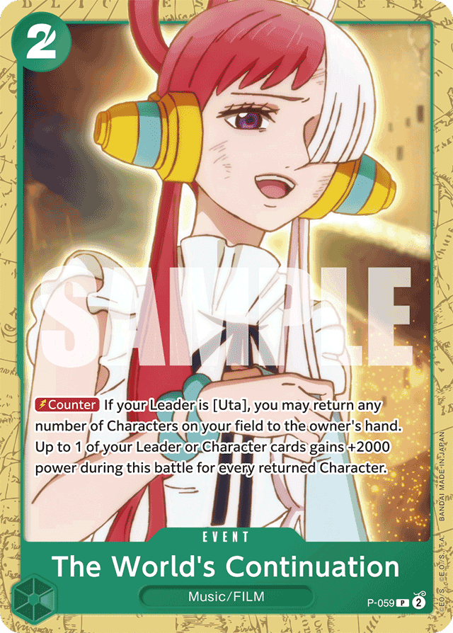 [Counter] If your Leader is [Uta], you may return any number of Characters on your field to the owner's hand. Up to 1 of your Leader or Character cards gains +2000 power during this battle for every returned Character.