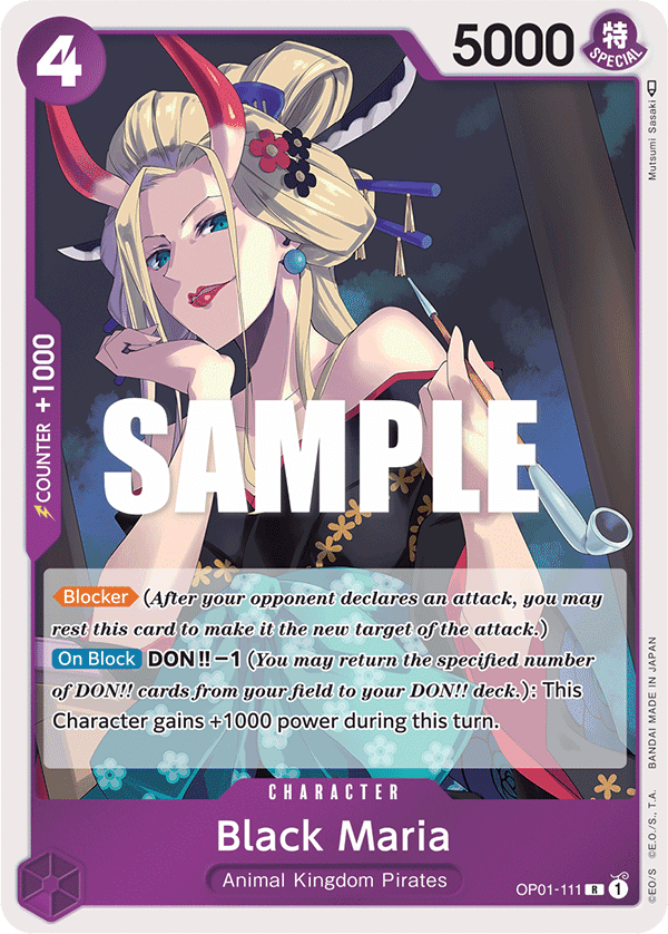 [Blocker] (After your opponent declares an attack, you may rest this card to make it the new target of the attack.) [On Block] DON!! −1 (You may return the specified number of DON!! cards from your field to your DON!! deck.): This Character gains +1000 power during this turn.