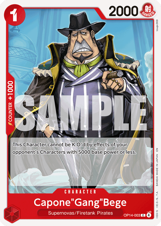 This Character cannot be K.O.'d by effects of your opponent's Characters with an original power of 5000 or less.