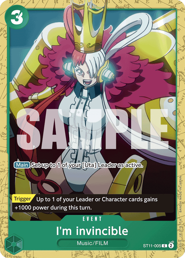 [Main] Set up to 1 of your [Uta] Leader as active. [Trigger] Up to 1 of your Leader or Character cards gains +1000 power during this turn.