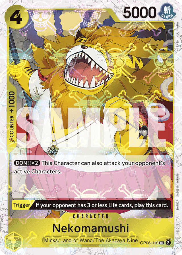 [DON!! x2] This Character can also attack your opponent's active Characters. [Trigger] If your opponent has 3 or less Life cards, play this card.