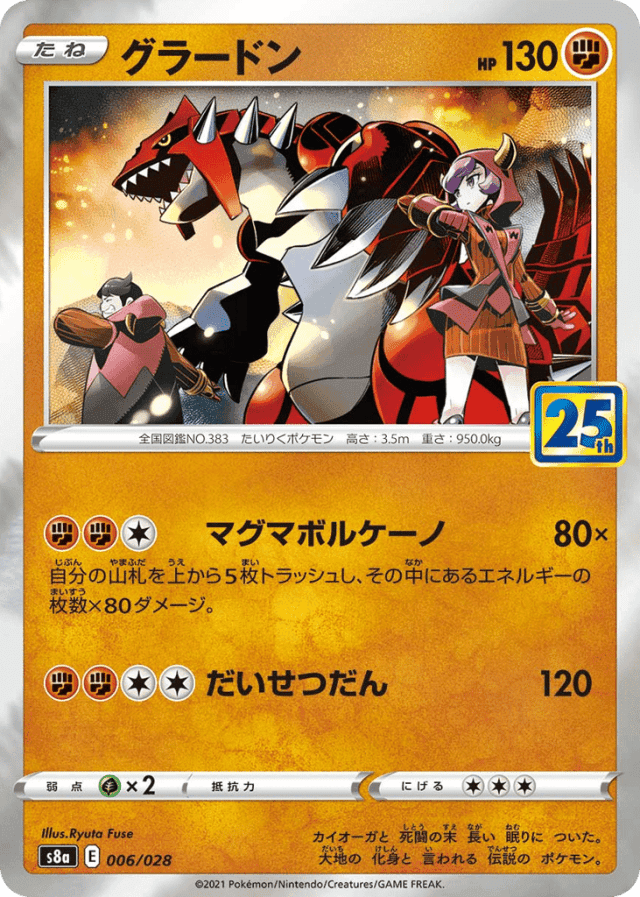 Magma Volcano80×Cost: 3自分の山札を上から5枚トラッシュし、その中にあるエネルギーの枚数×80ダメージ。