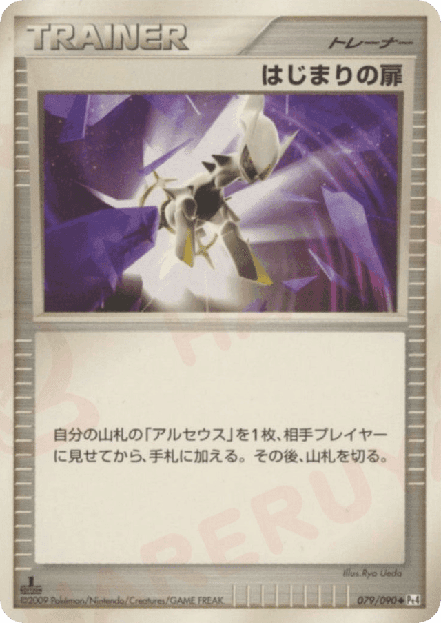 自分の山札の「アルセウス」を1枚、相手プレイヤーに見せてから、手札に加える。その後、山札を切る。 グッズは、自分の番に何枚でも使える。
